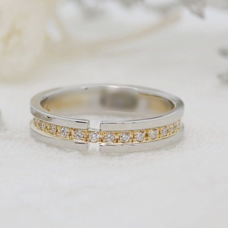 2種類以上の金属の組み合わせ。プラチナ・イエローゴールド・ピンクゴールド・シャンパンゴールド・ブラックゴールドをお好みの部分に、はめ込むことが出来ます。